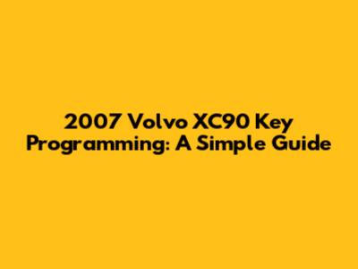 2007 Volvo XC90 Key Programming: A Simple Guide