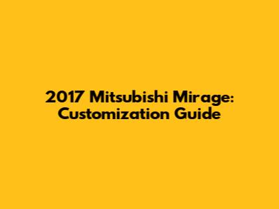2017 Mitsubishi Mirage: Customization Guide