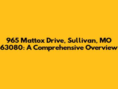 Hey there, future homeowner! Ever dreamt of a place that feels like a warm hug, nestled in a community that's got that small-town charm with all the modern conveniences? Well, 965 Mattox Drive in Sullivan, Missouri 63080 might just be the spot you've been searching for. This article is your ultimate guide, a deep dive into everything this property and its surrounding area have to offer. We're talking location, potential, and the lifestyle that awaits you. So, grab a coffee (or your favorite beverage), kick back, and let's explore what makes 965 Mattox Drive such a compelling prospect.