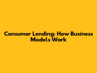 Consumer Lending: How Business Models Work