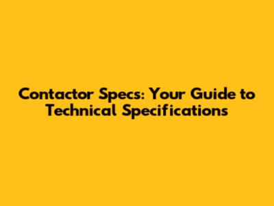 Contactor Specs: Your Guide To Technical Specifications