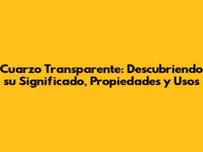 ¡Hola a todos! Hoy vamos a sumergirnos en el fascinante mundo del cuarzo transparente, también conocido como cristal de roca. Este cristal es uno de los más populares y versátiles en el mundo de la gemología y la espiritualidad. ¿Listos para descubrir todo sobre su significado, propiedades y cómo podemos usarlo en nuestra vida diaria? ¡Vamos allá!