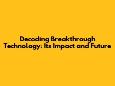 Decoding Breakthrough Technology: Its Impact And Future