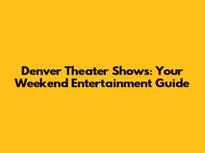 Denver Theater Shows: Your Weekend Entertainment Guide