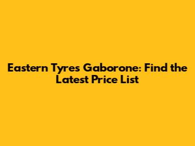 Eastern Tyres Gaborone: Find The Latest Price List