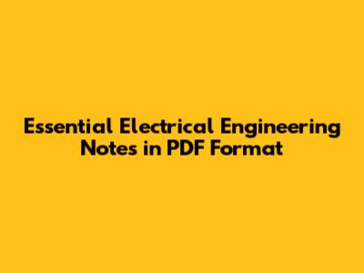 Essential Electrical Engineering Notes In PDF Format