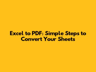 Excel To PDF: Simple Steps To Convert Your Sheets
