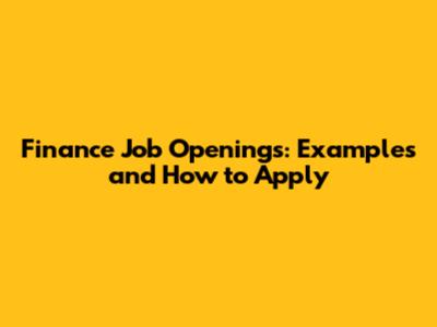 Finance Job Openings: Examples And How To Apply