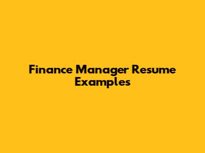 Finance Manager Resume Examples: