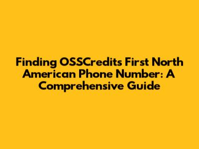 Unveiling the Importance: Why Seek OSSCredits' First NA Phone Number?