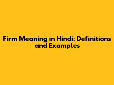 Firm Meaning In Hindi: Definitions And Examples
