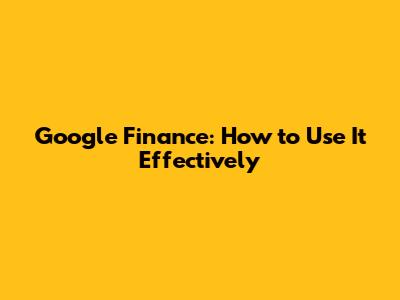 Google Finance: How To Use It Effectively