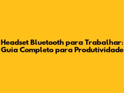 Headset Bluetooth Para Trabalhar: Guia Completo Para Produtividade