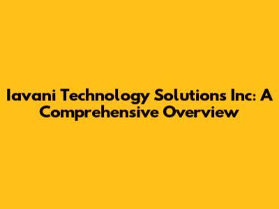 Iavani Technology Solutions Inc: A Comprehensive Overview
