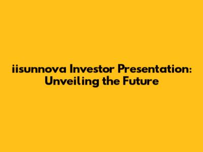 Iisunnova Investor Presentation Insights