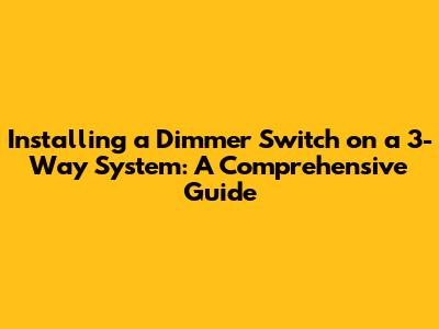 Install Dimmer Switch On 3-Way: A Simple Guide