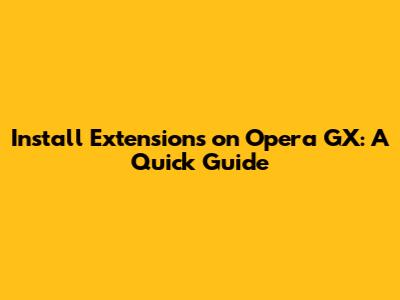 Install Extensions On Opera GX: A Quick Guide