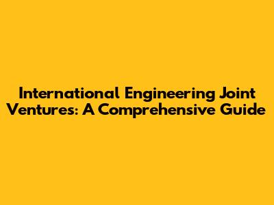 International Engineering Joint Ventures: A Comprehensive Guide