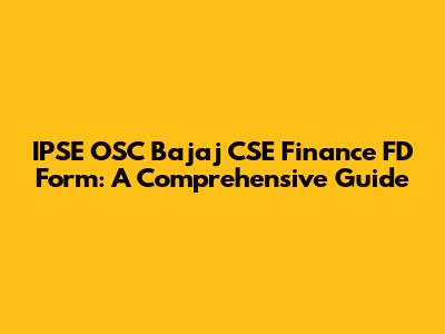 IPSE OSC Bajaj CSE Finance FD Form: A Comprehensive Guide