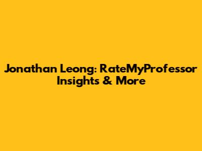 Jonathan Leong: RateMyProfessor Insights & More