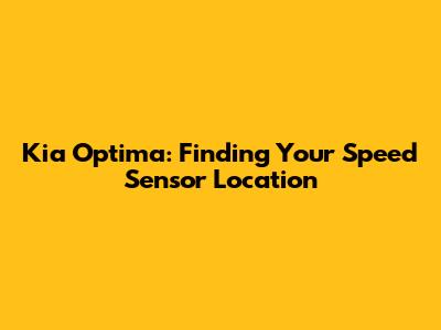 Finding the Speed Sensor Location on Your Kia Optima