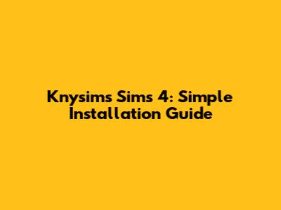 Knysims Sims 4: Simple Installation Guide