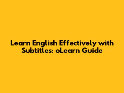 Learn English Effectively With Subtitles: OLearn Guide