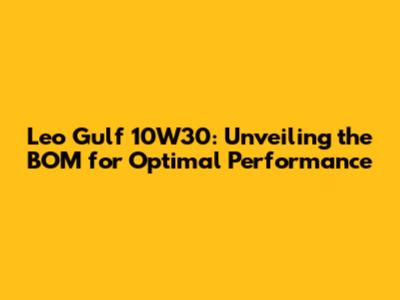 Leo Gulf 10W30: Unveiling The BOM For Optimal Performance