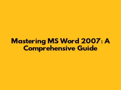 Mastering MS Word 2007: A Comprehensive Guide