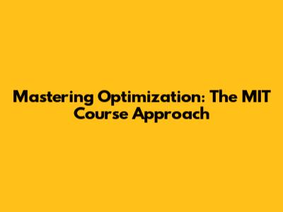 Mastering Optimization: The MIT Course Approach