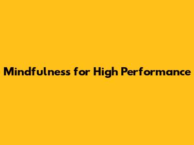 Benefits of Mindfulness for High Performance