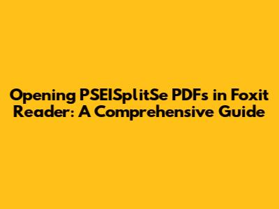 Opening PSEISplitSe PDFs In Foxit Reader: A Comprehensive Guide