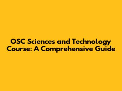 OSC Sciences And Technology Course: A Comprehensive Guide