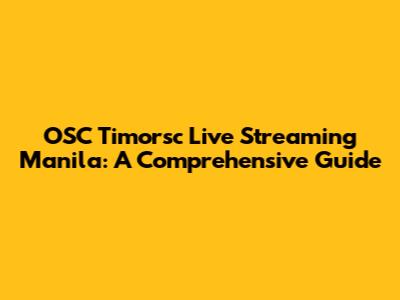 OSC Timorsc Live Streaming In Manila: Your Guide