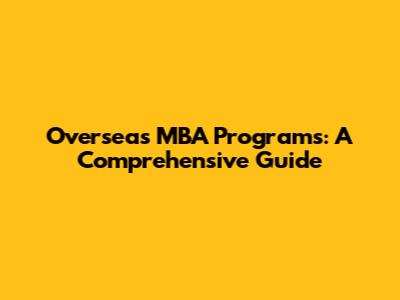 Overseas MBA Programs: A Comprehensive Guide