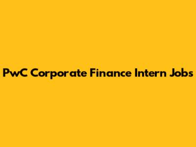 PwC Corporate Finance Intern Jobs