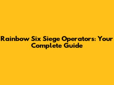 Rainbow Six Siege Operators: Your Complete Guide
