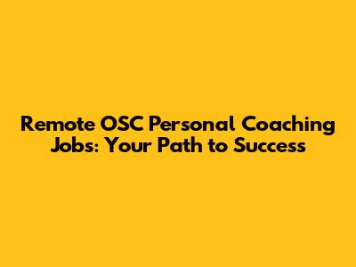 Remote OSC Personal Coaching Jobs: Your Path To Success