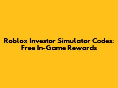 Roblox Investor Simulator Codes: Free In-Game Rewards