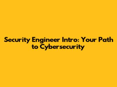 Security Engineer Intro: Your Path To Cybersecurity