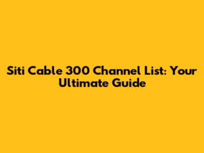 Siti Cable 300 Channel List: Your Guide