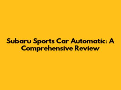 Subaru Sports Car Automatic: A Comprehensive Review