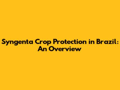 Syngenta Crop Protection In Brazil: An Overview