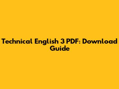 Technical English 3 PDF: Download Guide