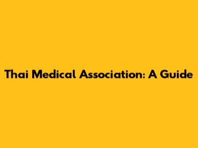 Thai Medical Association: A Guide