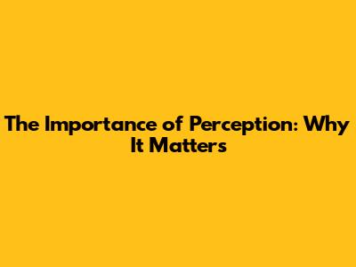 The Importance Of Perception: Why It Matters