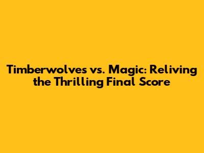 Timberwolves Vs. Magic: Reliving The Thrilling Final Score