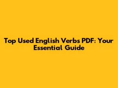 Top Used English Verbs PDF: Your Essential Guide