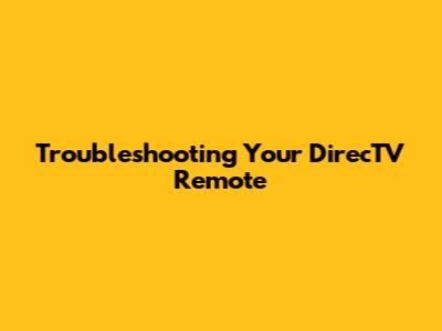 Troubleshooting Your DirecTV Remote