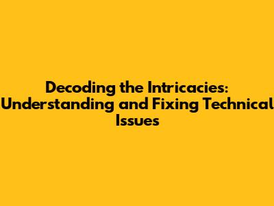 Understanding And Fixing Complex Technical Issues